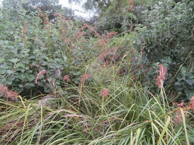 入口あたりにはピンク色のハナカタバミがかわいく咲いており、海の広場一面にいろんな草たちが生い茂り、その上にはバッタやカマキリなどの昆虫類が沢山飛び跳ねていました。
