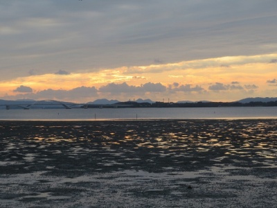 これからは後背林の紅葉も見られます。和白干潟から見る夕日もとてもきれいです。