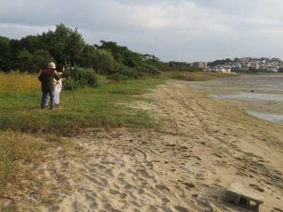 日が差してきて、とても蒸し暑くなったので少し早めに、五丁川の左岸の木陰で鳥合わせをしました。冬鳥の種類も多く飛来し始め、まだ渡り途中の鳥も観察できた充実した探鳥会でした。