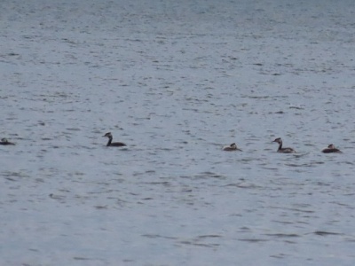 海辺を歩いて観察しました。海の広場の前や唐原川河口付近にも、ミヤコドリがいます。合わせて41羽になり、今までで最高羽数です。沖にカンムリカイツブリが30羽くらいいました。