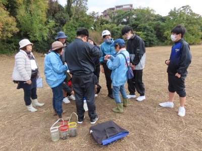 他にもガザミやソトオリガイ、アラムシロガイなどを見ることが出来ました。砂洲まで戻って、採取した生きものを紹介しました。