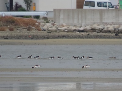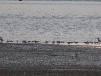 ミヤコドリ37羽、シロチドリ18羽、ダイゼン3羽、ハマシギ80羽、ミユビシギ2羽、アオアシシギ1羽、イソシギ9羽の、7種150羽がカウントされました。他にはツクシガモ14羽、ミサゴ4羽、カンムリカイツブリ35羽が観察されました。