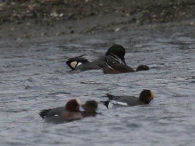 ヒドリガモとヨシガモの群れは残っていました。冷たい北風が吹く中でしたが、たくさんの鳥に出会えました。今年最後の探鳥会、お疲れさまでした。