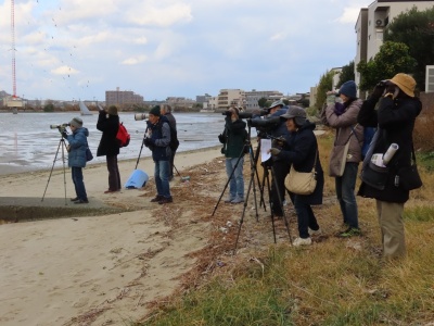 風の強い日には、鳥たちが河口や砂洲、水際などに集まっており、より近くで見ることができます。皆様も鳥たちに会いに来ませんか、癒されますよ。