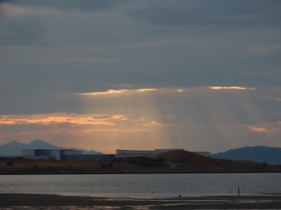 クリーン作戦の終わり頃には、雲間から夕焼けの日差しが斜めに差し込み「天使のはしご」が見られました。