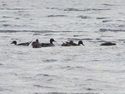唐原川河口付近にヨシガモやヒドリガモが見えました。ツクシガモもたくさんいて、全体で169羽でした。沖合にカンムリカイツブリをやっと1羽見つけました。