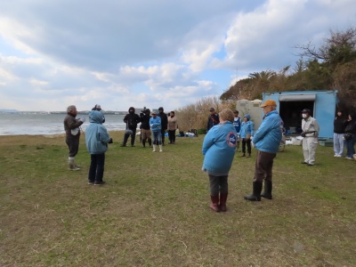 今日は大雪の天気予報で、海辺は強風が吹きつけていました。雪はまだ降っていませんでしたが、参加者は少なかったです。行ける範囲で観察しようということになりました。