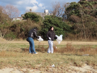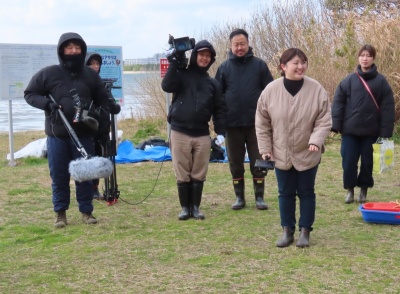 本日のクリーン作戦は朝から北西の風が強く、気温も低くて寒かったです。始めにごみの回収方法の説明をしてから、清掃を始めました。FBSの取材が有りました。