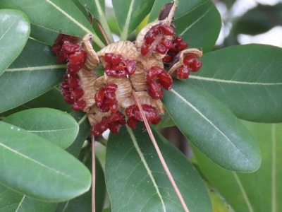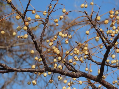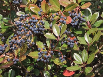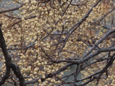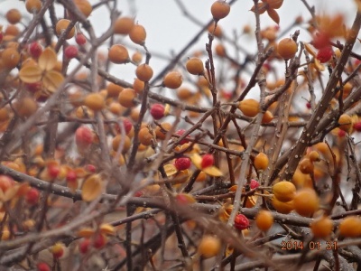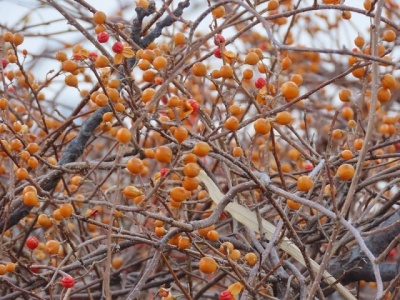 河口の道にはセンダンやシャリンバイの実がたくさん生っており、トベラの実は割れて赤くなっていました。 ツルウメモドキのオレンジや黄色の実がとてもきれいでした。