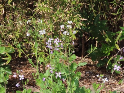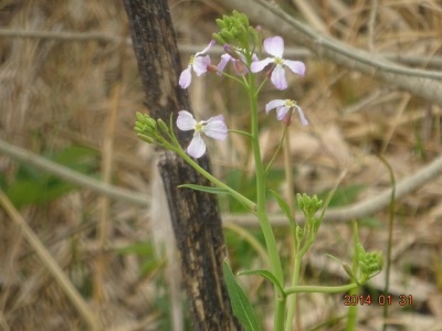 和白干潟の後背林では春に向けて小さな新芽が準備を始めており、一番目立つのはハマウドで、ハマサジも芽を出していました。ハマダイコンの花も遠慮がちに顔をのぞかせています。