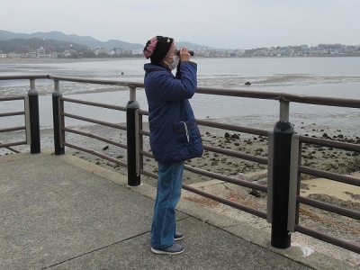 今日は大雪の天気予報で、海辺は強風が吹きつけていました。曇り時々雪でしたが、吹雪く時もありました。参加者がありましたので、行ける範囲で観察しようということになりました。